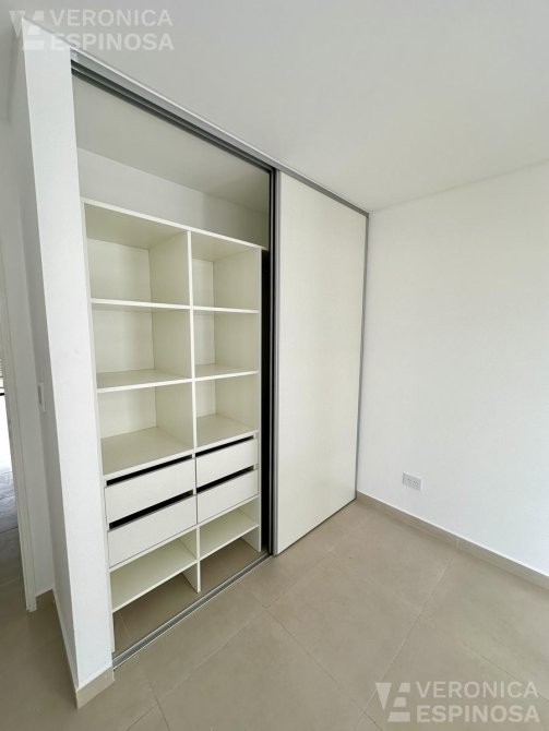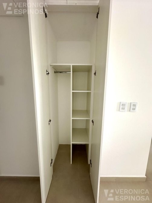 El dormitorio cuenta con un placard integral tipo americano en melamina y su interior está completamente equipado. El baño es completo, con artefactos sanitarios de primera calidad, incluyendo inodoro con depósito exterior, bidé y vanitory.Los pisos de porcelanato, el sistema de agua caliente central, y los vidrios de seguridad son solo algunas de las características que garantizan una vida cómoda y segura.