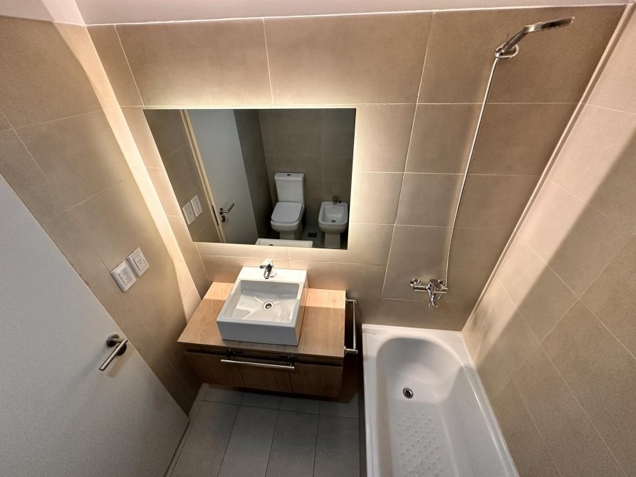 Se ingresa por estar-comedor, cocina integrada, con muebles bajo mesada y alacena, con artefacto de cocina de cuatro hornallas. Salida a amplio balcón. Dormitorio con placard integral y piso de cerámico. Baño completo con bañera (incluye inodoro con deposito exterior, bidé, bañera y vanitory).
