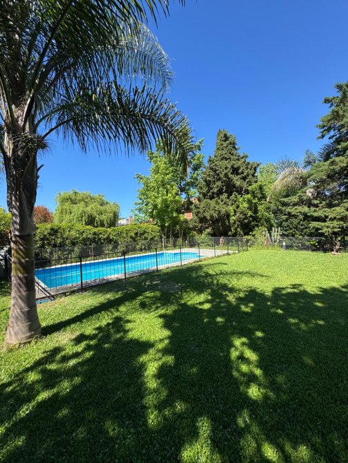 Hermosa galería techada con parrilla y toilette, ideal para reuniones. Jardín totalmente parquizado con excelente privacidad y una pileta cercada que completa un entorno ideal para disfrutar en familia.