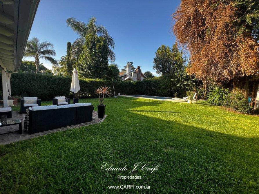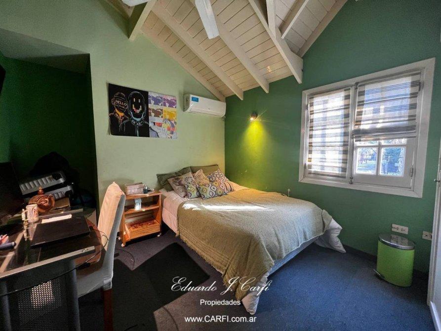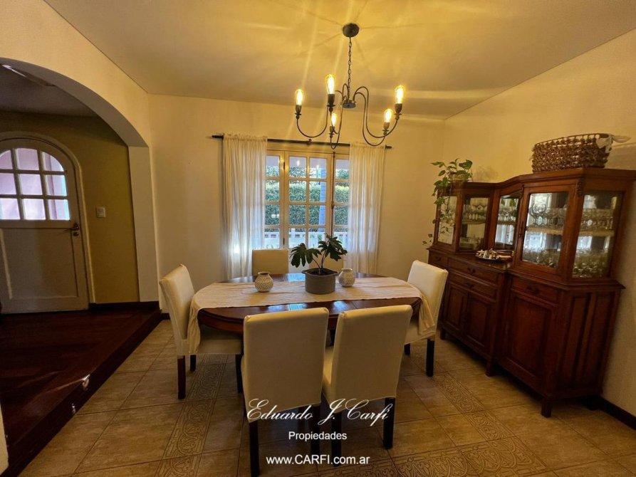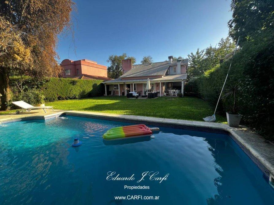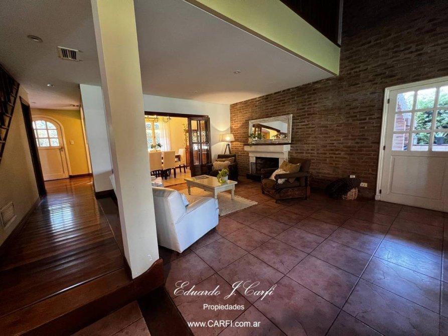 Ubicado estratégicamente muy cerca de las Autopistas del Oeste y Del Buen Ayre, que permite un rápido acceso hacia Capital Federal y zona Norte, a pocas cuadras de la zona de Parque Leloir, se distribuye en 2 plantas. En planta baja  encontramos hall de recepción, escritorio, comedor con vista al frente, un gran living comedor con hogar, techo doble altura,  cocina integrada con barra desayunadora. Toilette de recepción. Dependencia de servicio con baño completo. El living nos permite salir a una galería semicubierta desde donde podemos  disfrutar la vista de todo el parque. En planta alta encontramos tres dormitorios, el principal en suite con vestidor, escritorio (o cuarto dormitorio), baño completo. En la segunda planta posibilidad de armar un playroom o escritorio. La casa cuenta con un hermoso  parque con piscina, galería con parrilla. Calefacción central, aires acondicionados individuales en todos los ambientes. Cochera semicubierta para dos autos y descubierta para dos autos.  Seguridad 24 horas.