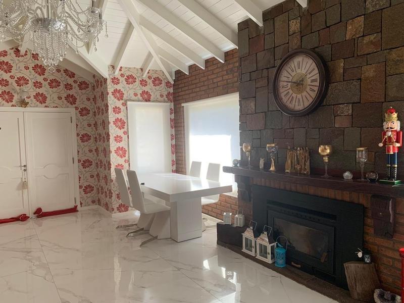 Planta baja: amplio y luminoso living comedor con hogar a leña, cocina completa con comedor diario, toilette de recepción, escritorio, habitación de huéspedes en suite, lavadero independiente, gran quincho cerrado con parrilla, galería semi cubierta, un hermoso parque con piscina con luces led y entrada para varios autos.
