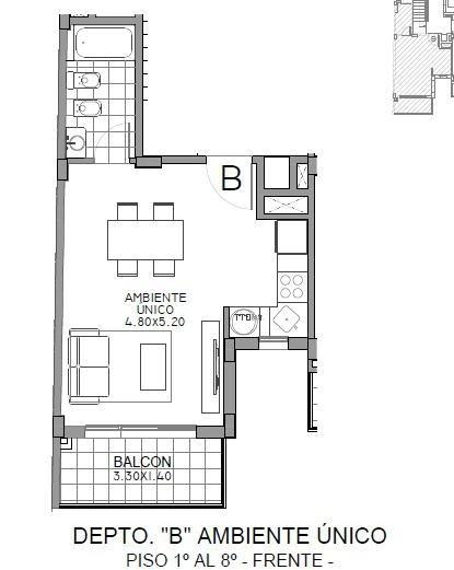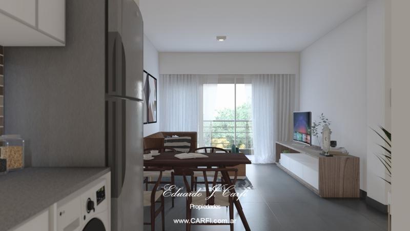 Septimo piso al frente, living comedor con balcon y cocina integrada, un baño completo.