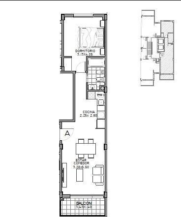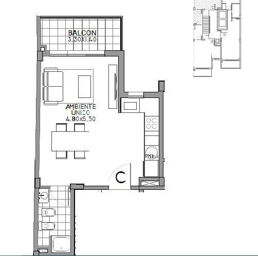Departamentos de 1 amb. al frente: 29.52 mts. + 4.60 mts. : 34.12 mts.
