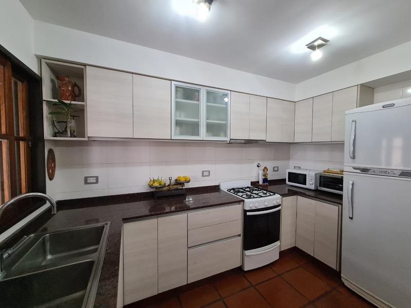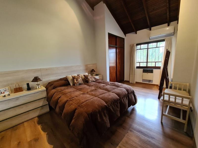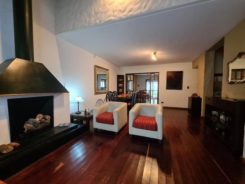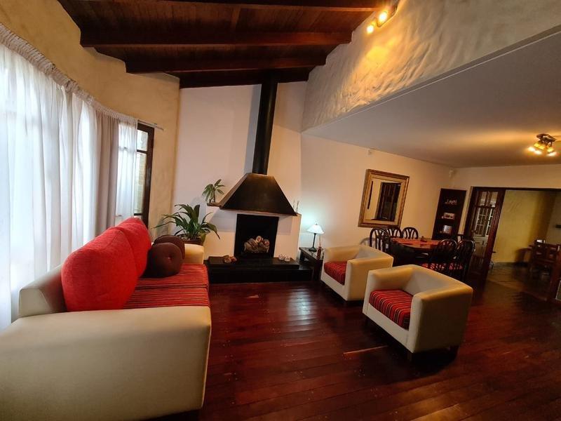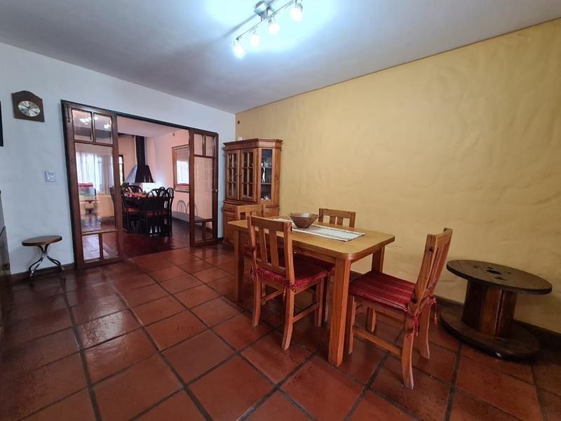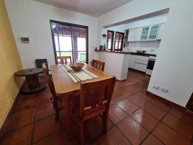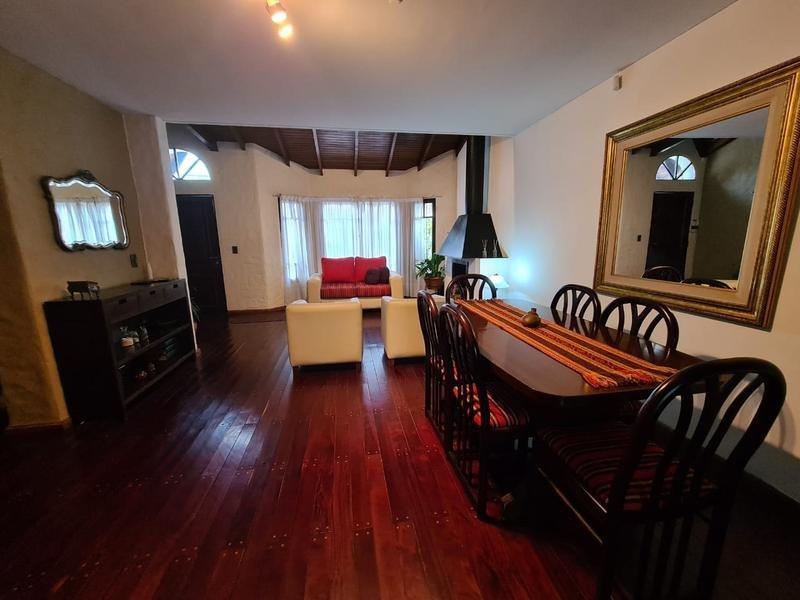En su planta baja dispone de un amplio Living-comedor con hogar a leña (con pisos de madera en quebracho). A continuación se encuentra el comedor diario con cocina integrada con barra desayunadora. Amplia galería cubierta con parrilla, orientada al oeste. Parque con pileta. Garage cubierto para un auto y entrada para otro.