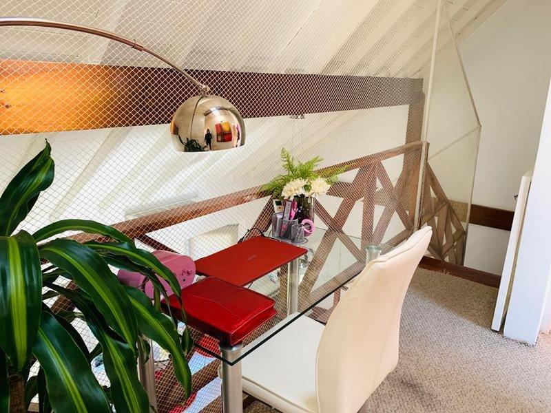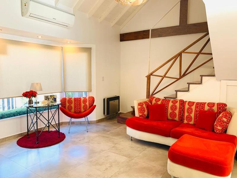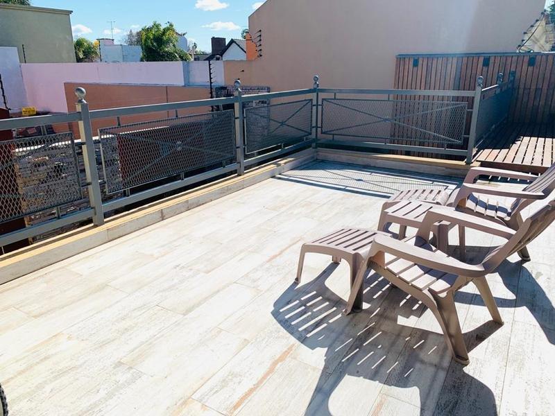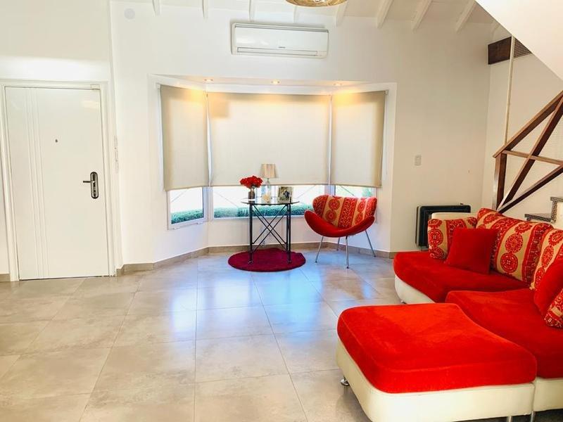 En su planta alta se encuentra el hall de distribución que balconea al living (posible escritorio), el dormitorio principal con salida a una hermosa terraza balcón con vista al jardín, mas dos dormitorios, todos con sus respectivos placares, y baño completo.