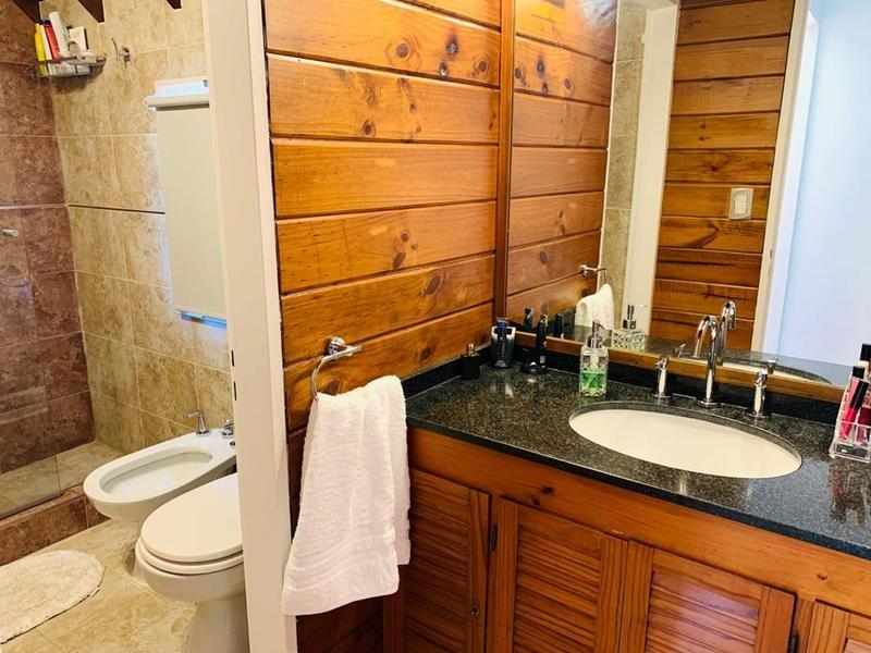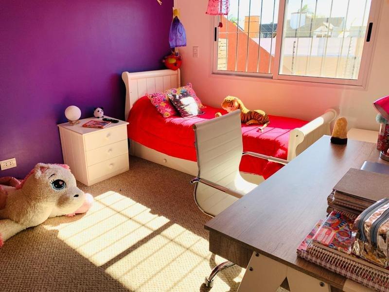 En su planta baja dispone de amplio living, cocina comedor con vista al jardin, baño completo. Garage. Quincho completo con parrilla, mesada con anafe, horno empotrado y baño. Jardín y espacio con deck de madera. Cuarto auxiliar.