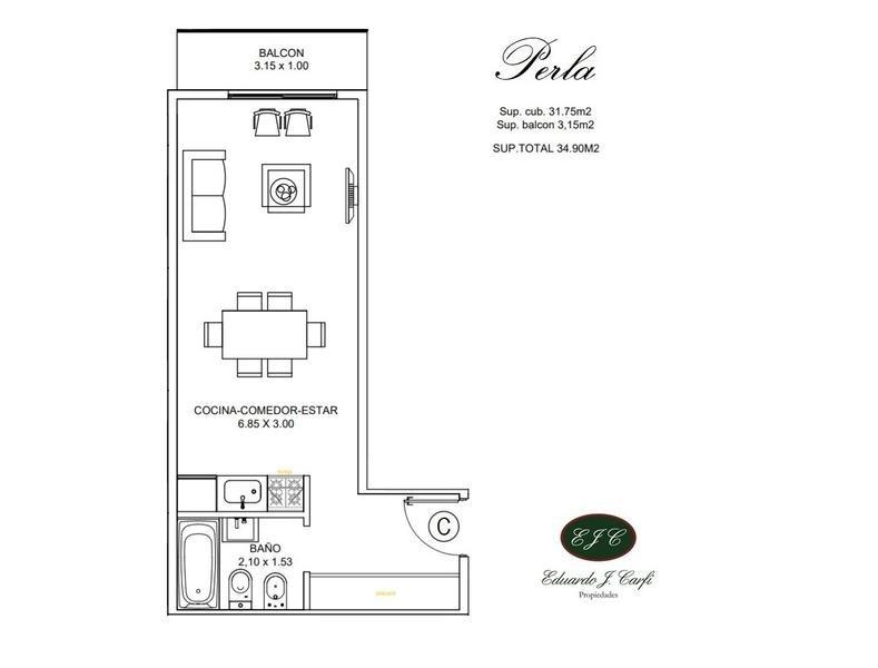 Superficie total 34m2