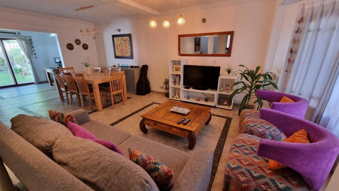 En su planta baja dispone de un Living Comedor amplio y luminoso, cocina con vista al parque , toilette de recepción, pileta, parilla y cochera cubierta que conecta con el interior de la casa.