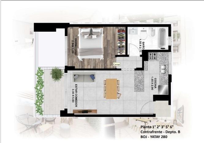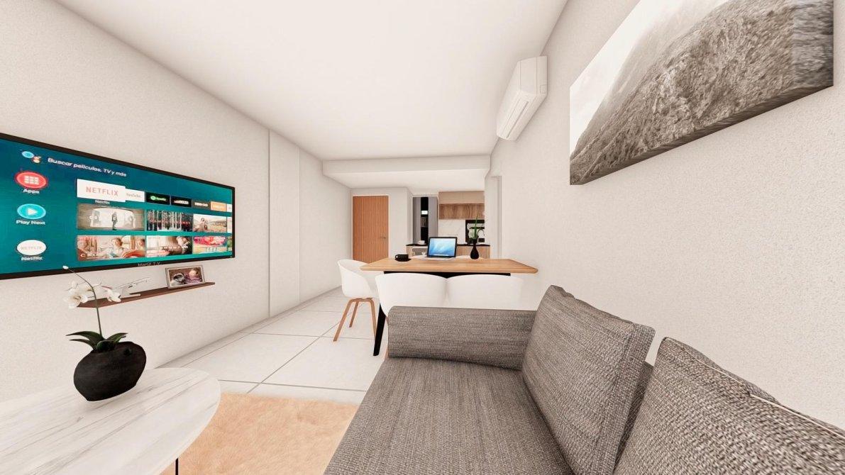 La unidad es un departamento de 2 ambientes con cocina americana semi integrada, que favorece la amplitud y funcionalidad del espacio.