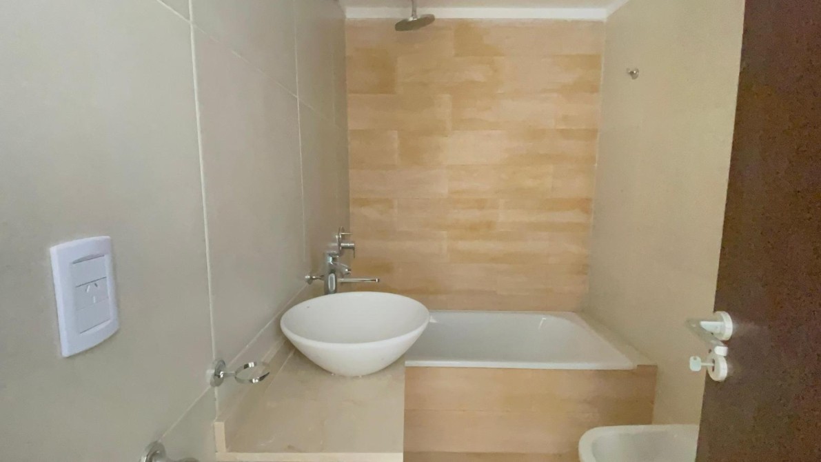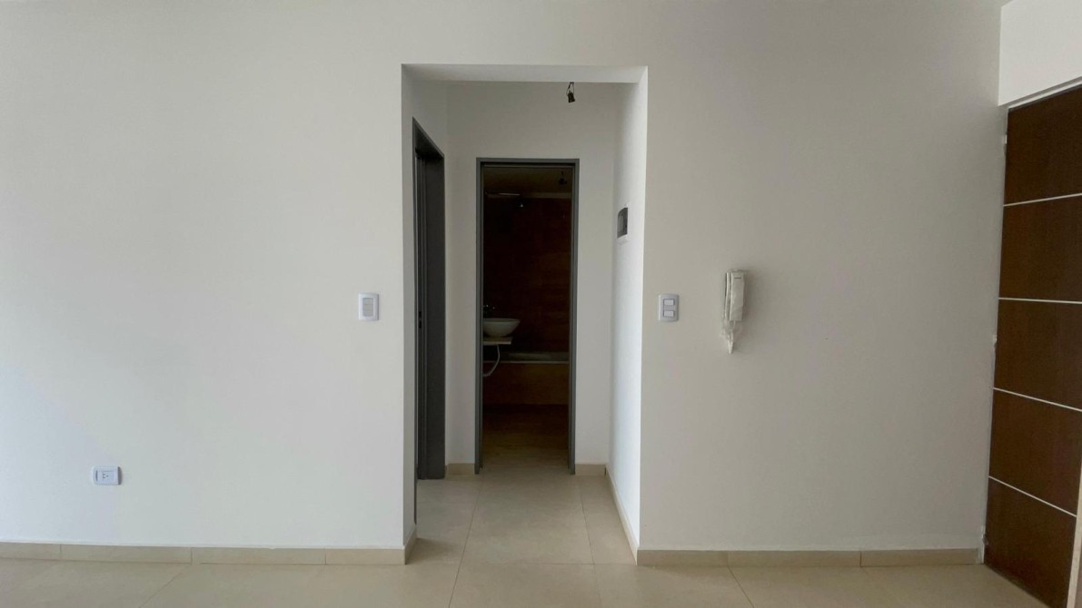 Un hall distribuidor conecta con un baño completo con bañera y accesorios de primera calidad, y finalmente, un amplio dormitorio con placard empotrado e interiores terminados, también con vista al contrafrente, brindando privacidad y tranquilidad.