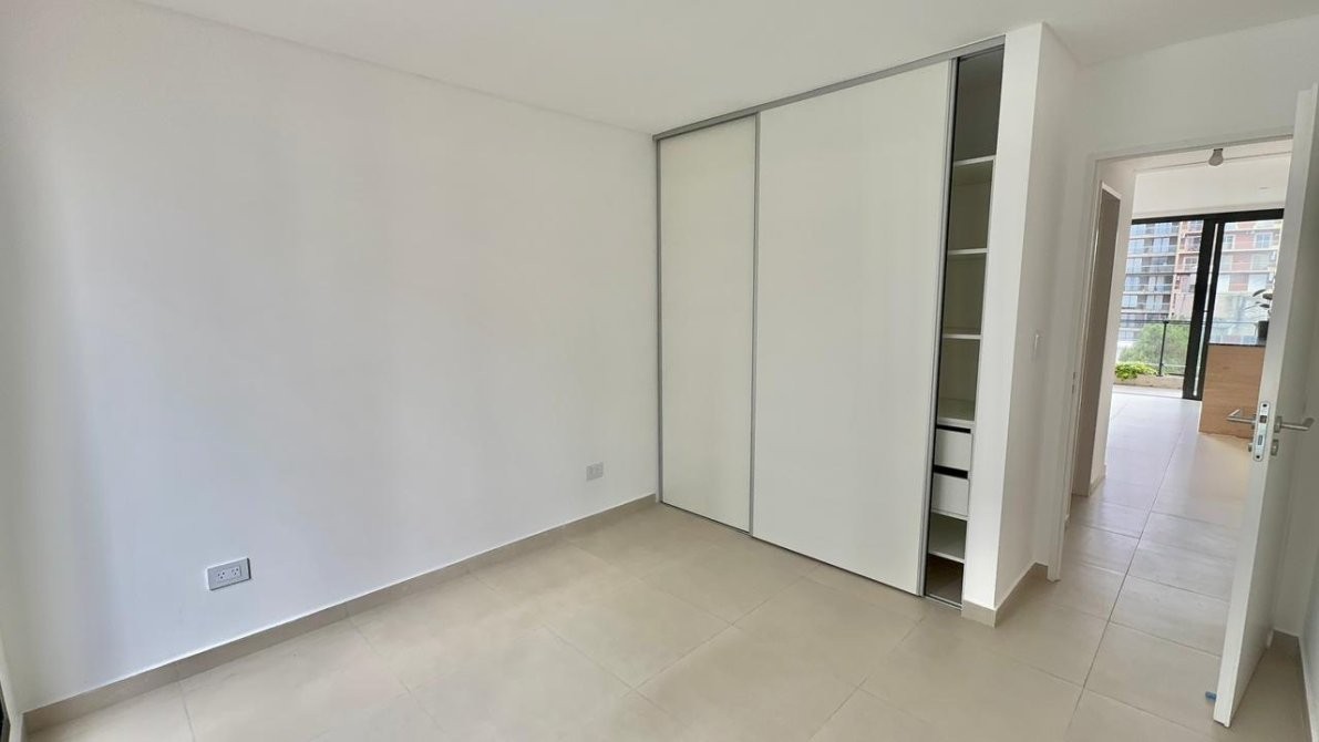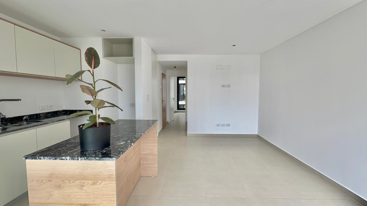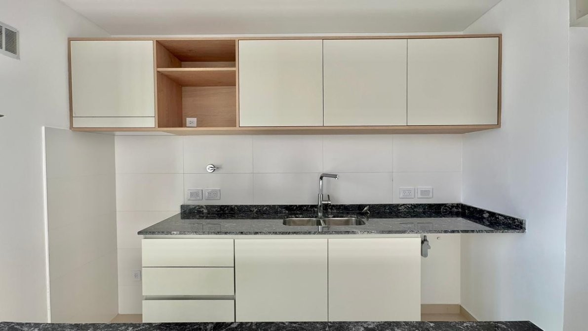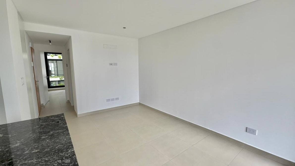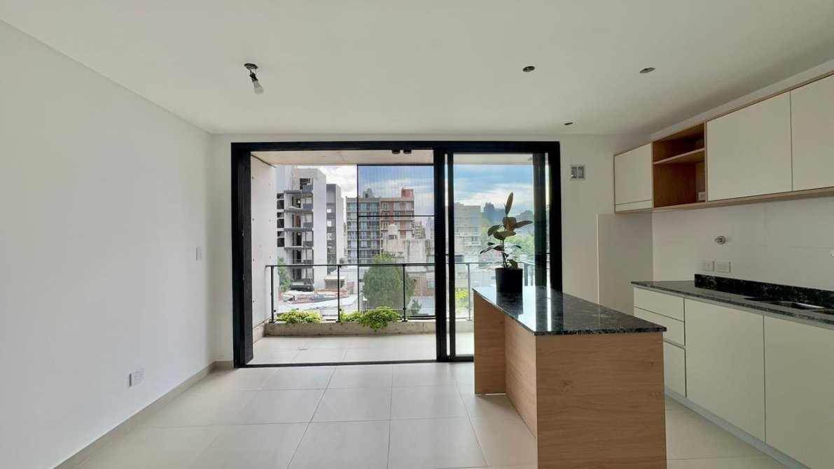 La unidad cuenta con un amplio living comedor con cocina integrada,   equipada con isla, bajo mesada y alacena completos. interiores de Placard. Desde el ambiente principal se accede a un amplio balcón al contrafrente con muy buena luz natural.