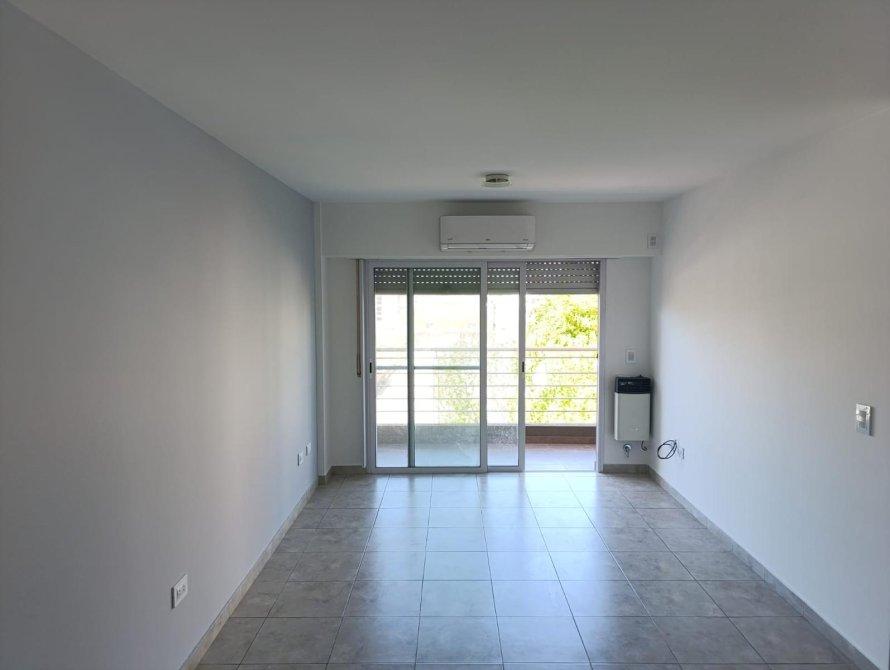 El ambiente principal es amplio y luminoso, con buena distribución y salida al balcón. Cuenta con un hall de entrada que conecta con la cocina independiente, totalmente equipada, y con un baño completo con bañera y todos sus accesorios. En el hall se encuentra un placard de guardado.