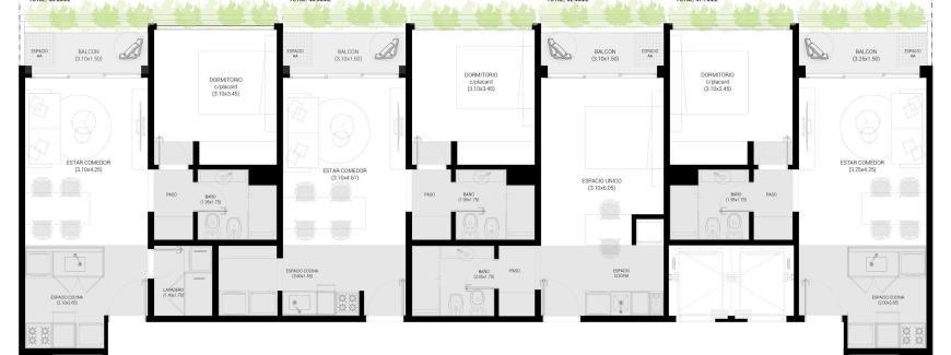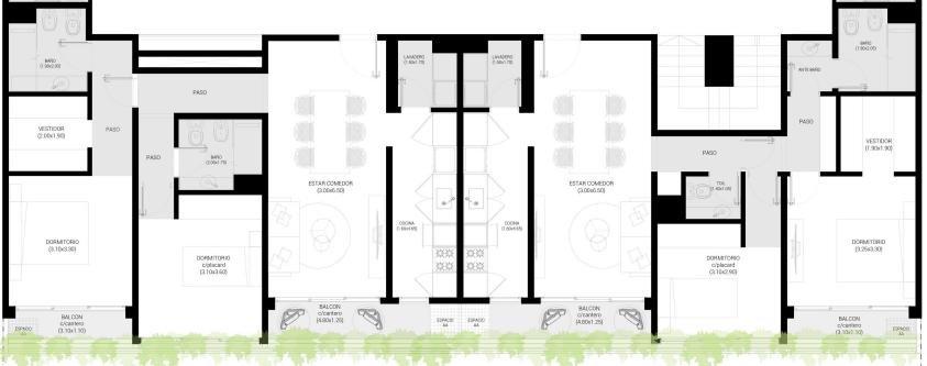 - Los balcones cuentan con espacios verdes incorporados