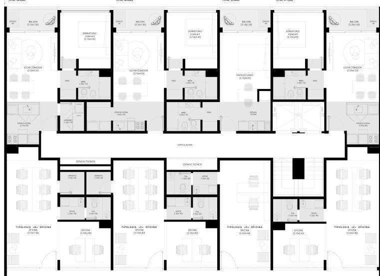 Este emprendimiento se desarrolla en dos torres y contara con oficinas de un ambiente desde los 22,5 mts2 hasta los 40 mts2, departamentos de dos ambientes desde los 42 mts2 hasta los 44,5 mts2 y tres ambientes desde los 77,5 mts2 hasta 88, 5 mts2.