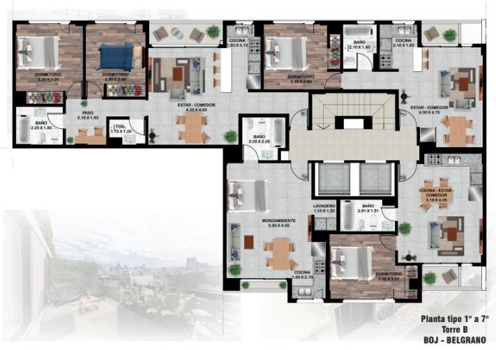 El mismo contara con dos cuerpos de ocho pisos cada uno, con un total de 53 departamentos, con cocheras opcionales (cubiertas y descubiertas). Las Unidades disponibles de UN ambiente tendrán un metraje aproximado de 36 mts2, las de dos ambientes de 43 mts2 y la de tres ambientes de 73 mts2.