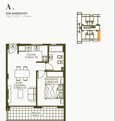 El desarrollo incluye unidades de uno, dos y tres ambientes, diseñadas para satisfacer diversas necesidades.