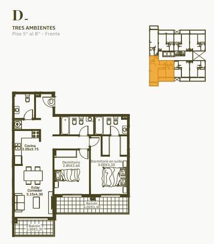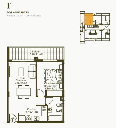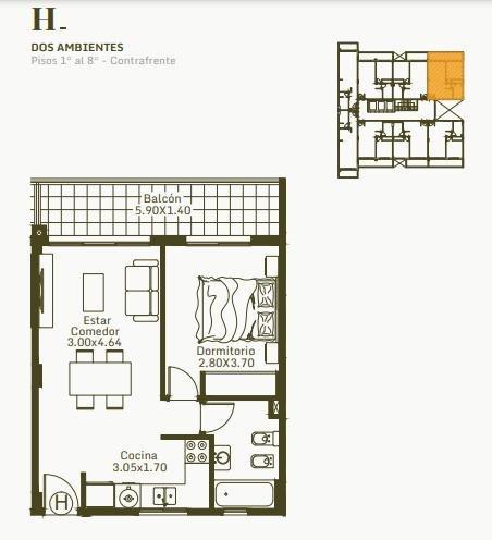 Los departamentos de un ambiente están disponibles desde U$S 41.000 (al contado), con un metraje de 36 m² cubiertos más 4 m² de balcón. Los de dos ambientes comienzan en U$S 50.500, ofreciendo 42 m² más 8 m² de balcón. Por su parte, los departamentos de tres ambientes tienen un precio inicial de U$S 102.000, con 78 m² cubiertos y 13 m² de balcón.