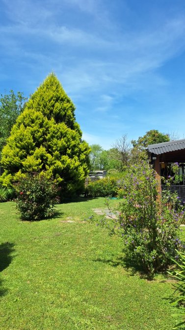Lote de terreno de 22,00 x 50,00 mts, totalmente parquizado, con arboles, plantas, luminarias, cerco perimetral de material, agua provista por perforación de 60 mts con bomba sumergible.