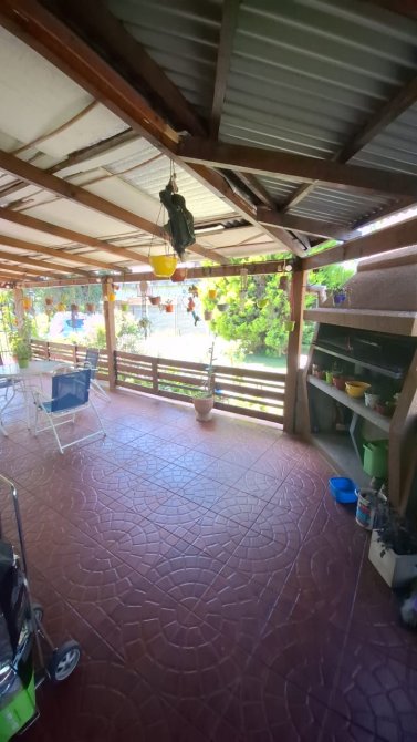 Galeria semicubierta, con pisos de ceramicas, cerco de madera tipo tranquera, parrilla. -