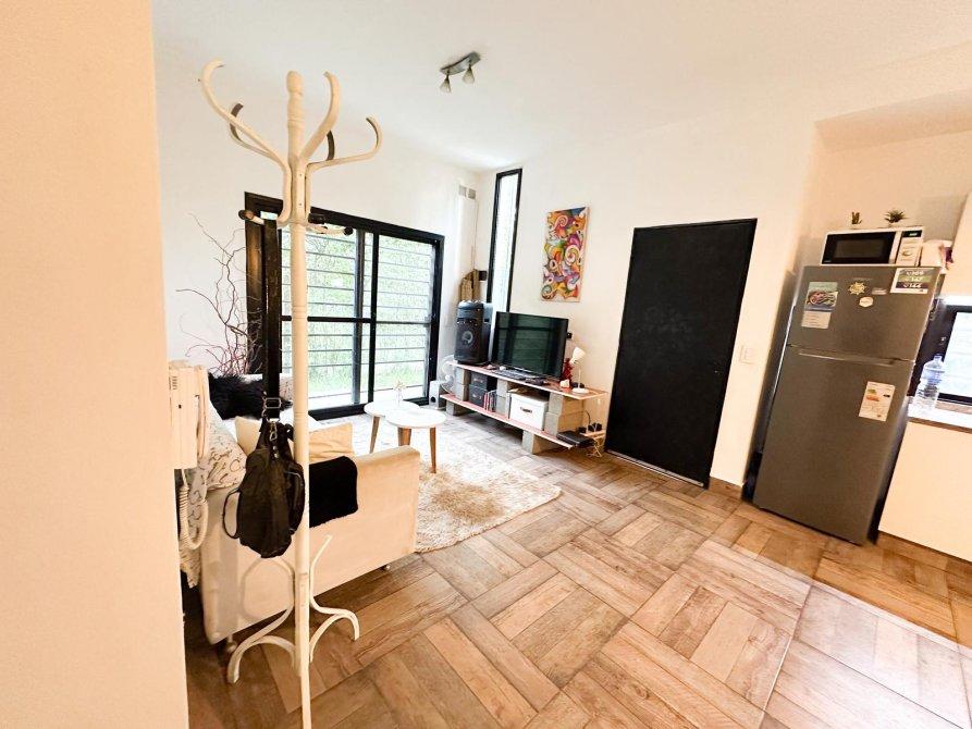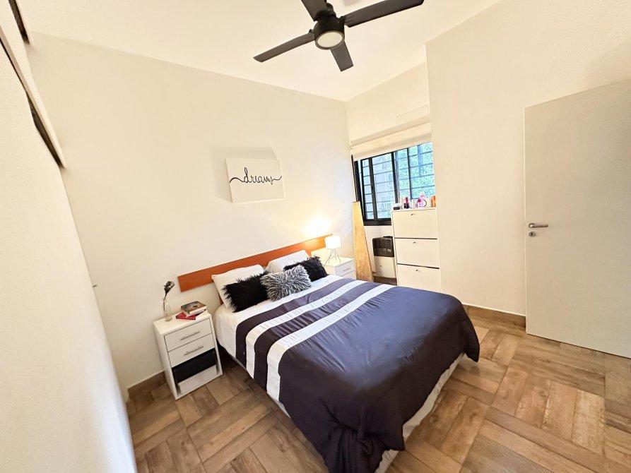 Amplio living comedor con ventanales que aportan gran luminosidad, cocina integrada, dormitorio principal con placard de amplias dimensiones, segundo dormitorio, y baño completo con bañera y claraboya.