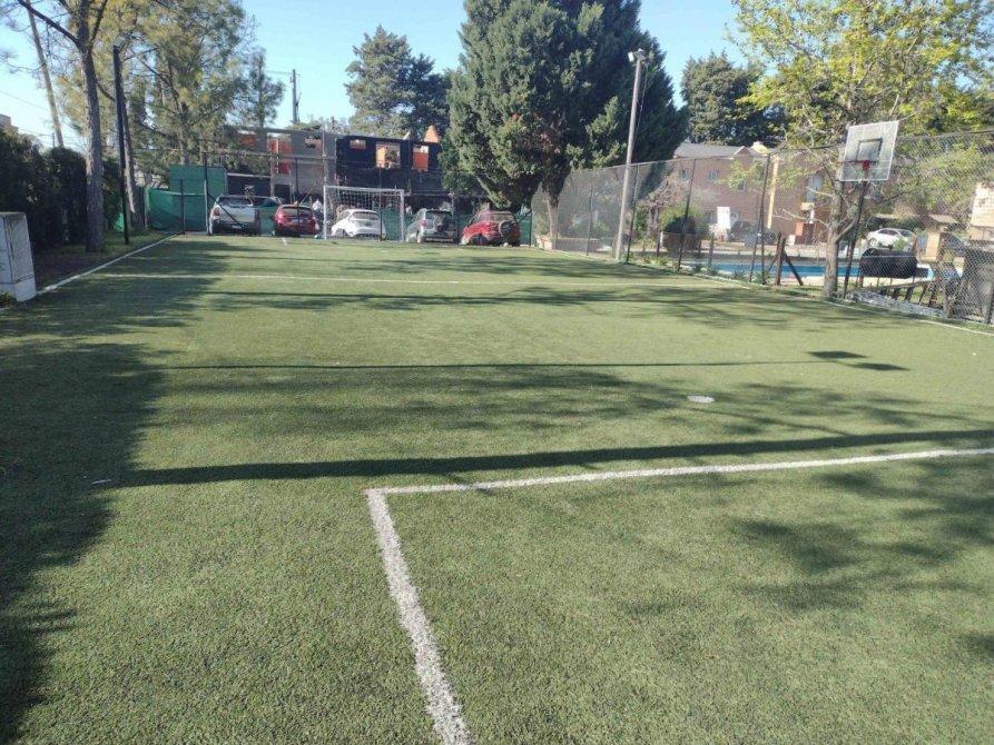 El barrio tiene pileta de natación, canchas de fútbol, plaza de juegos para niños, SUM