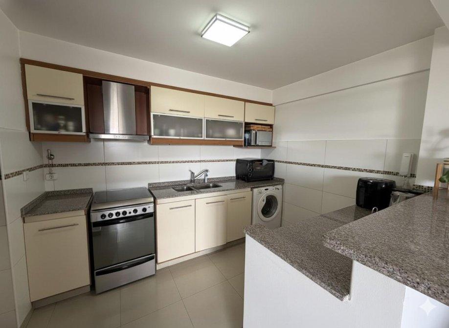 Consta de Living comedor, piso porcelanato, aire acondicionado, salida a balcon al frente, cocina integrada,desayunador, muebles sobre y bajo mesada