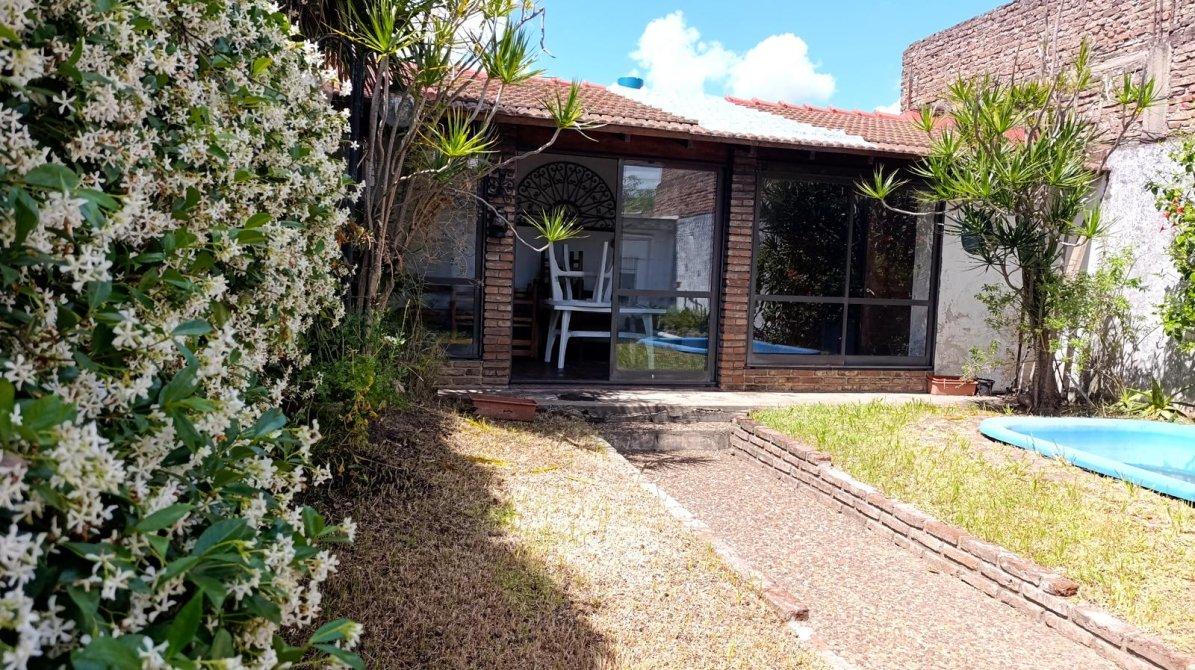 Cuenta con living, cocina comedor diario, dos dormitorios y baño completo. En el fondo, dispone de pileta  rectangular de fibra y quincho con parrilla, con capacidad para unas 15 personas y toilette.
