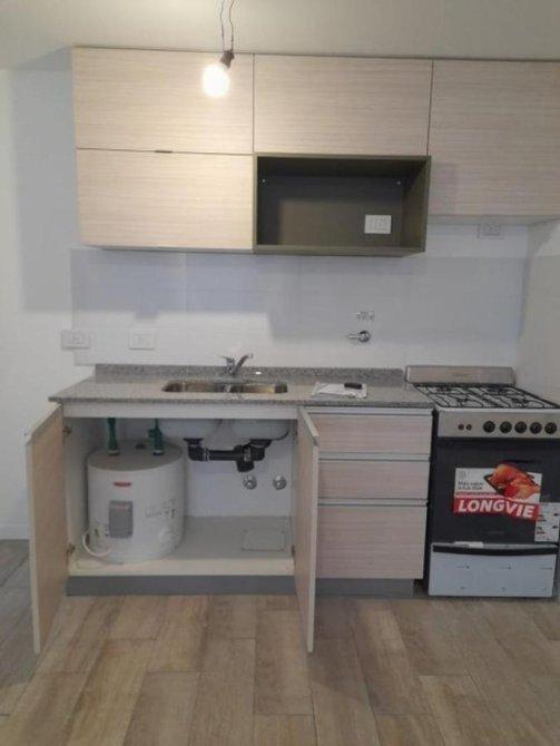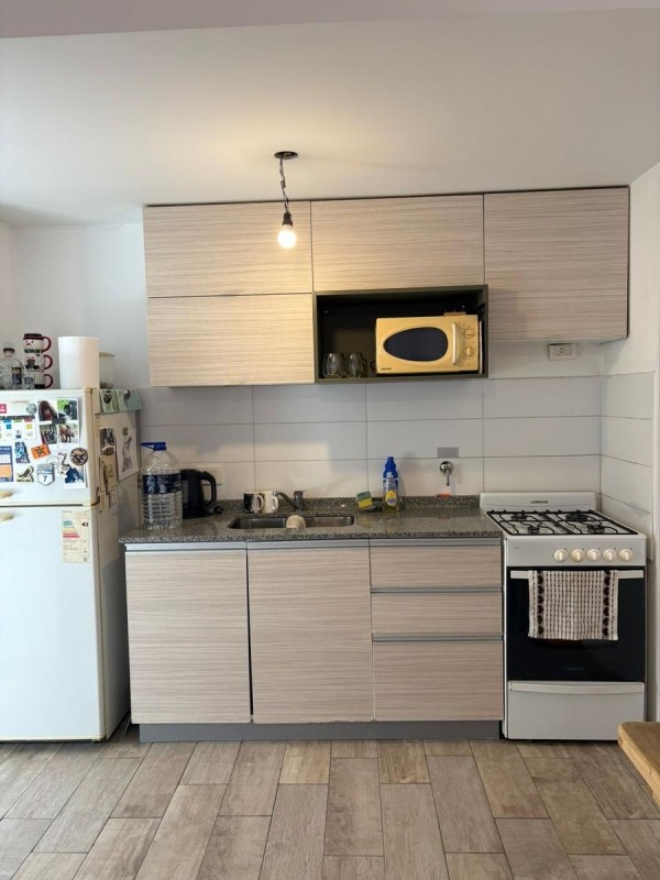 La unidad cuenta con 35m2 distribuidos en un amplio ambiente único con balcón a la calle, cocina totalmente instalada con muebles bajo y sobre mesada, y un baño completo con espacio para instalar lavarropas.