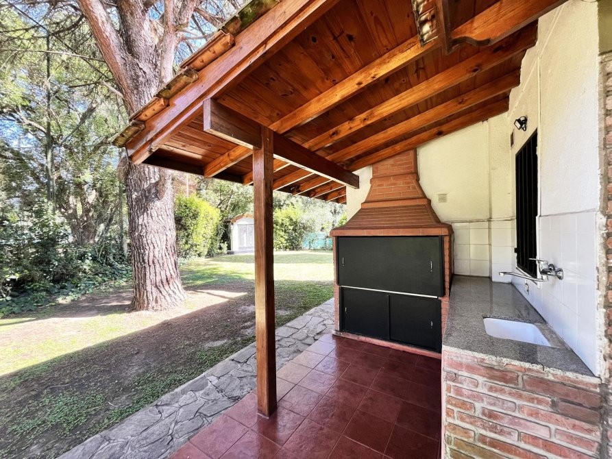 Galería cubierta con parrilla y vista abierta al jardín