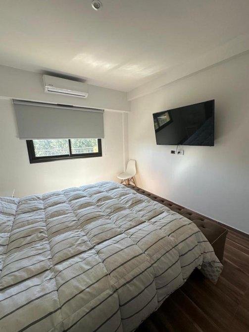 El dormitorio es amplio y luminoso, con placard y una distribución funcional. El baño completo presenta terminaciones de calidad, combinando diseño y practicidad.