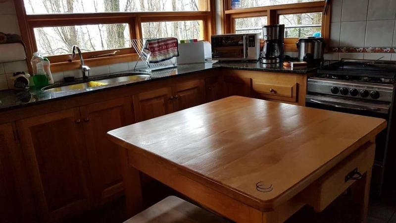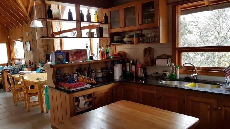 Espectacular Casa sobre una Pendiente, excelente construcción. Se vende amueblado. La propiedad se encuentra edificada sobre cimientos anticísmicos, madera de lenga de primera calidad de tierra del fuego, el exterior esta revestido con piedras 50 cm de piedra de voladura y el resto en madera. La casa se distribuye en 2 plantas: En planta baja se encuentran 3 dormitorios y un baño completo con Hidromasajes. En 1er piso se encuentra la cocina, con desayunador, living, hogar a leña y un baño con ducha. La propiedad tiene una antigüedad de 12 años. esta en excelente estado.