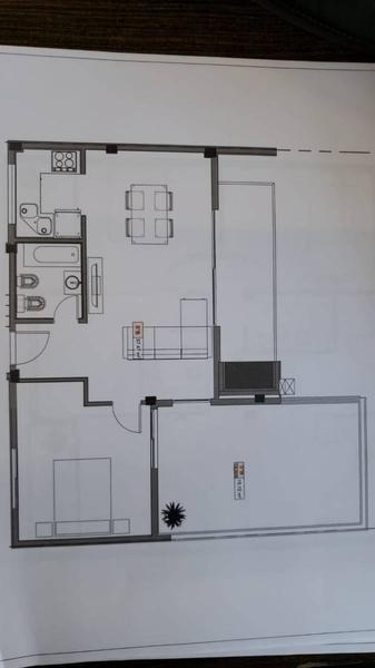 Living comedor con cocina integrada, muebles bajomesada, cocina tipo anafe victroceramico, spar. Con pisos de porcelanato. Caldera central, baño completo con bañera y vanitory, instalación sanitaria completa, dormitorio con placard integrados de piso a techo y pisos flotantes. Amplia terraza propia de 19m2