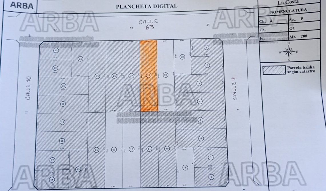 LOTE Nivelado de 12.99 mt de Frente x 52,25 mt de Fondo . TOTAL 678 mt2.  Calle 63 e/ 9 y 10 MAR DEL TUYU