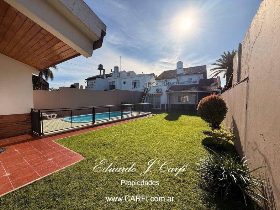Versatilidad: jardín + pileta + departamento/quincho al fondo.