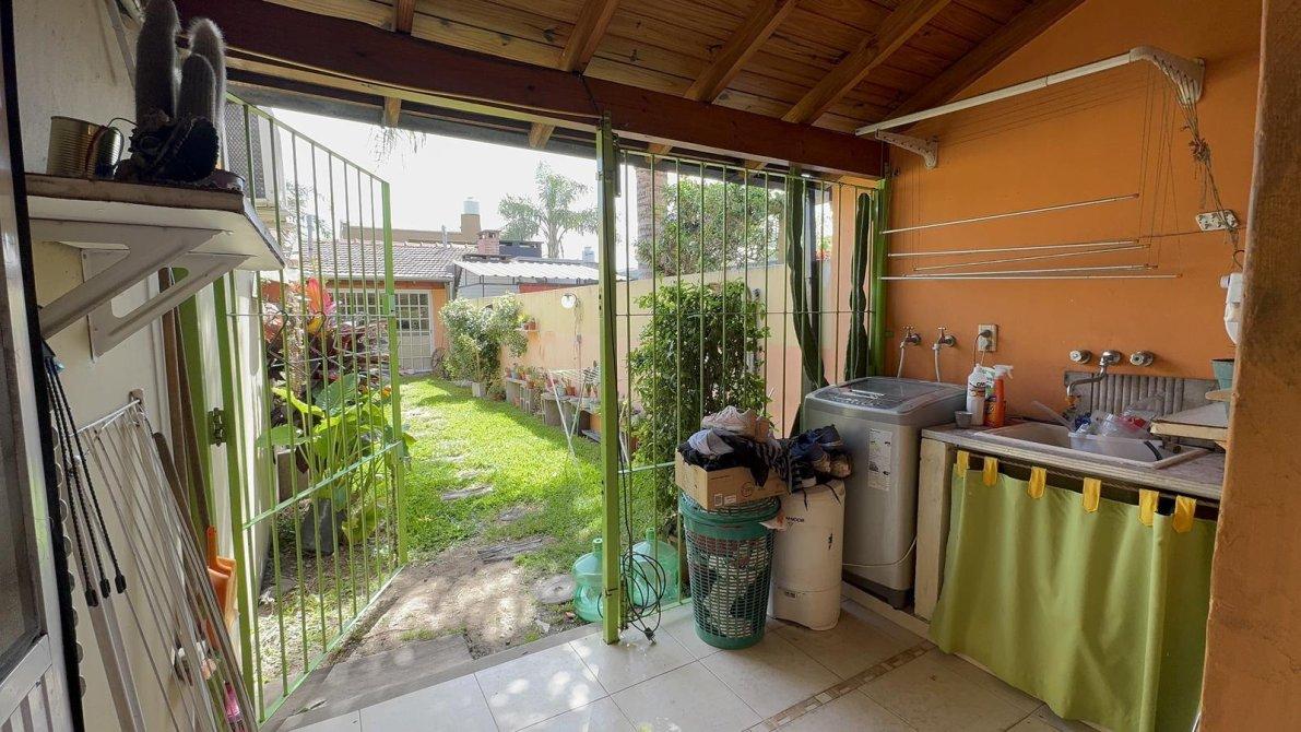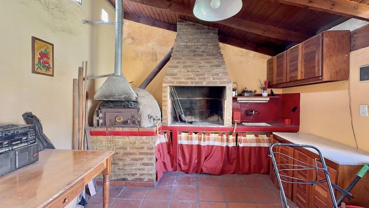 El fondo destaca por su espacio verde (jardín) y un quincho cubierto con parrilla y horno de barro, ideal para reuniones familiares. Posee cochera descubierta para dos vehículos. Con una antigüedad aproximada de veinticinco años y en muy buen estado general, el inmueble cuenta con todos los servicios: agua corriente, gas natural, electricidad, cloacas y pavimento.