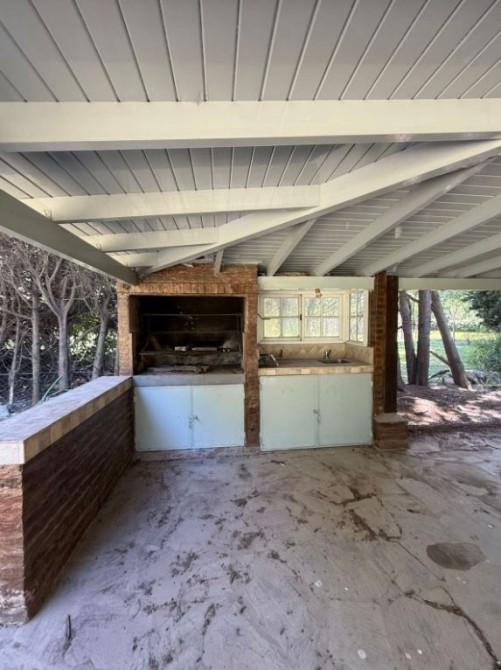 Garage semicubierto con parrilla.