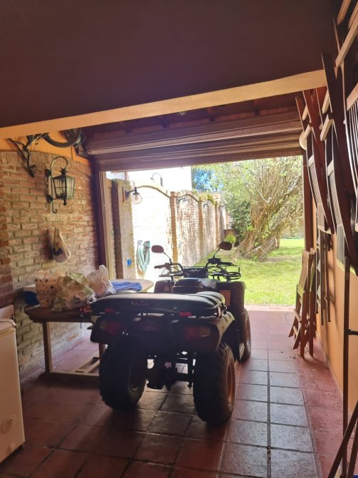 Desde la cocina se accede al lavadero cubierto donde se encuentran los servicios para luego pasar a un quincho con cerramiento de cortina metálica con sistema automatizado.