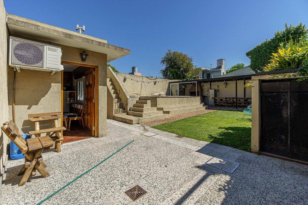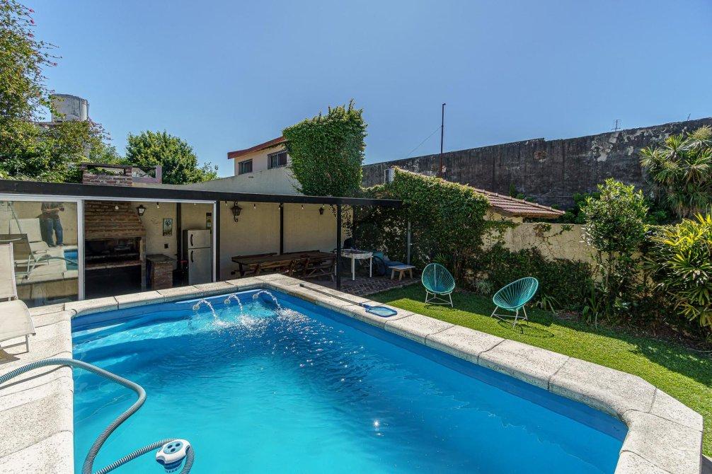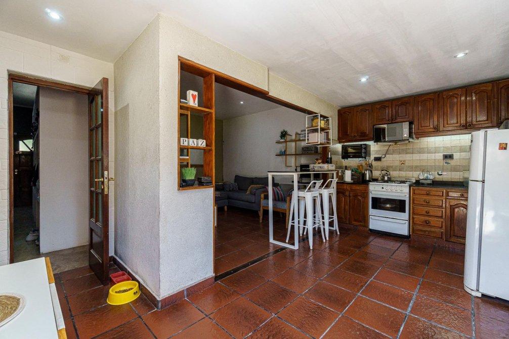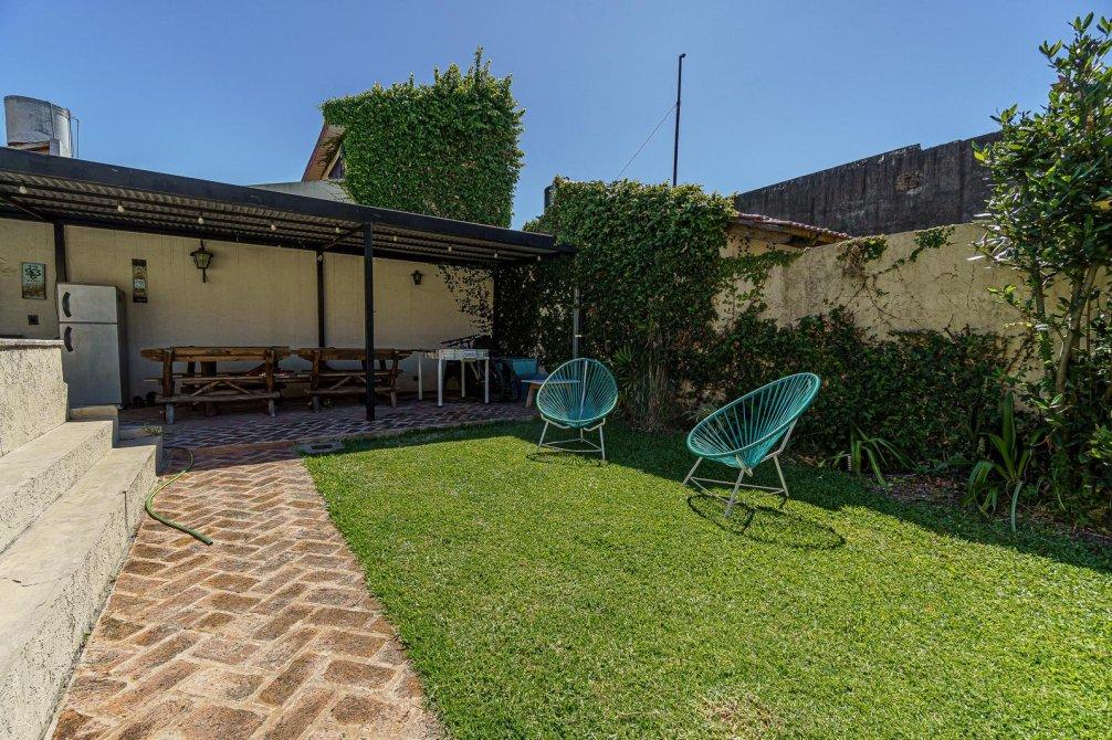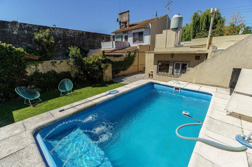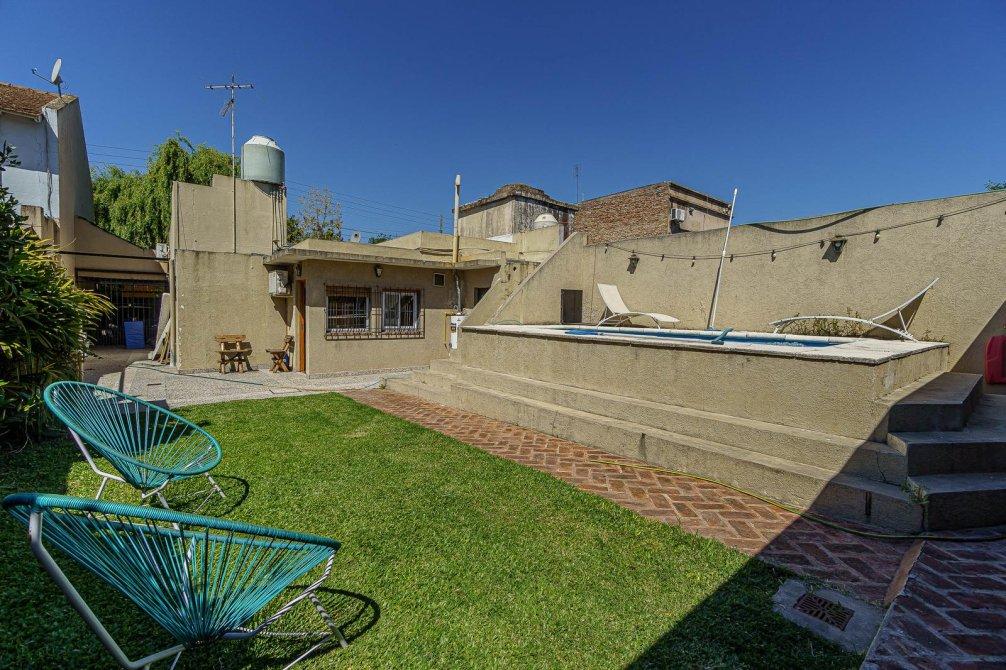VENTA Casa de 3 ambientes. Cuenta, al frente, con jardín y cochera semi cubierta y pasante con portón eléctrico. Igresando al inmuble, con living comedor (hoy utilizado como habitación), baño completo, cocina comedor integrado, sala de estar/living y dormitorio principal. Al fondo, baño secundario, patio, jardín, quincho semicubierto, parrilla y pileta.