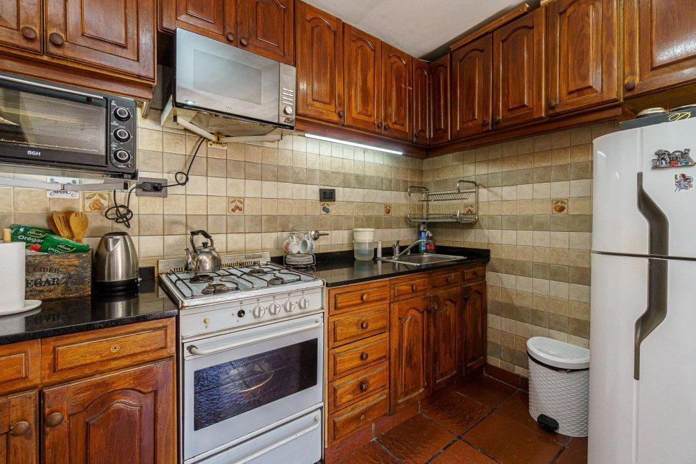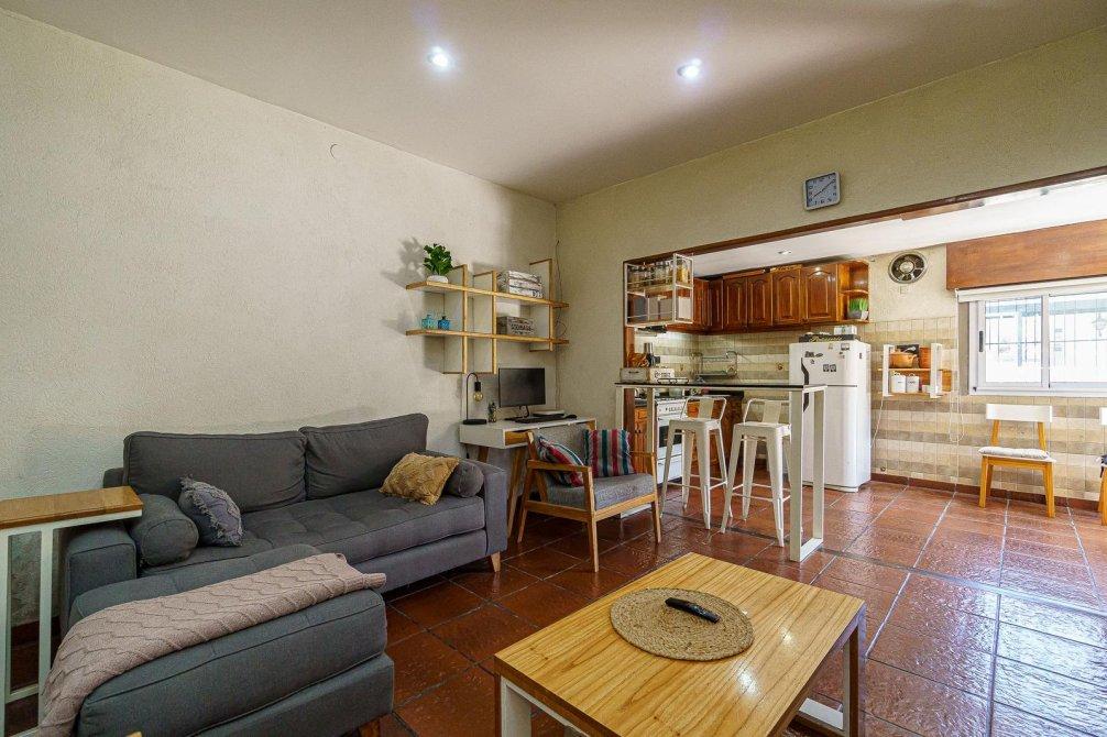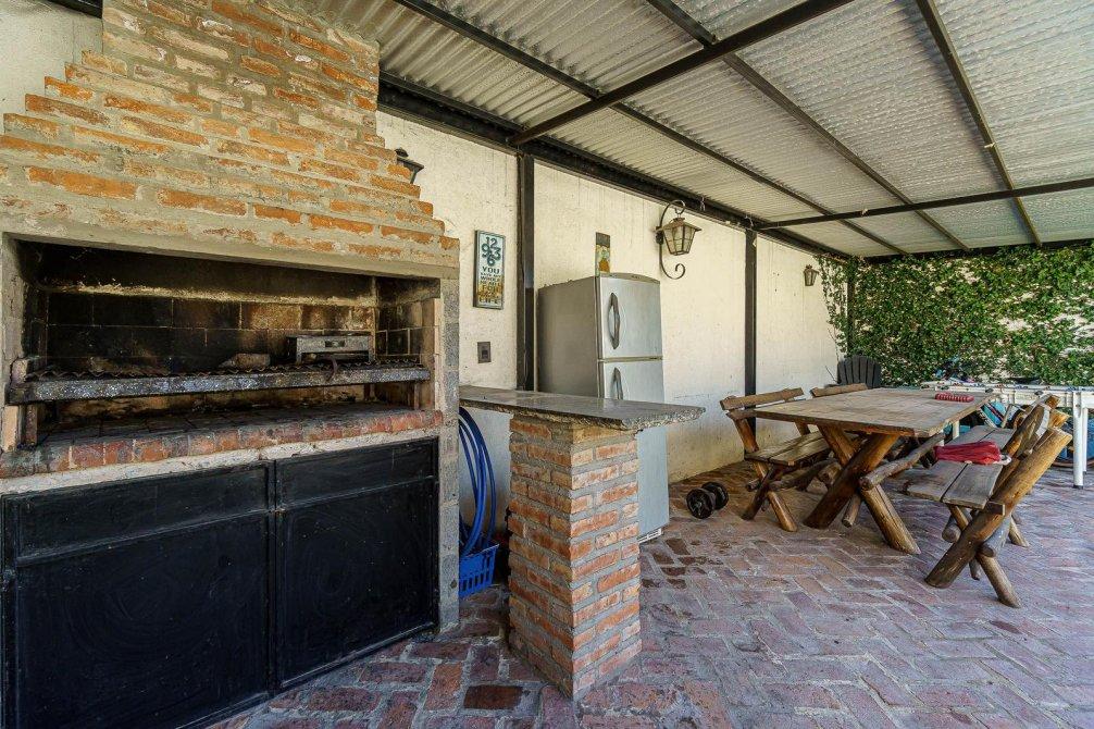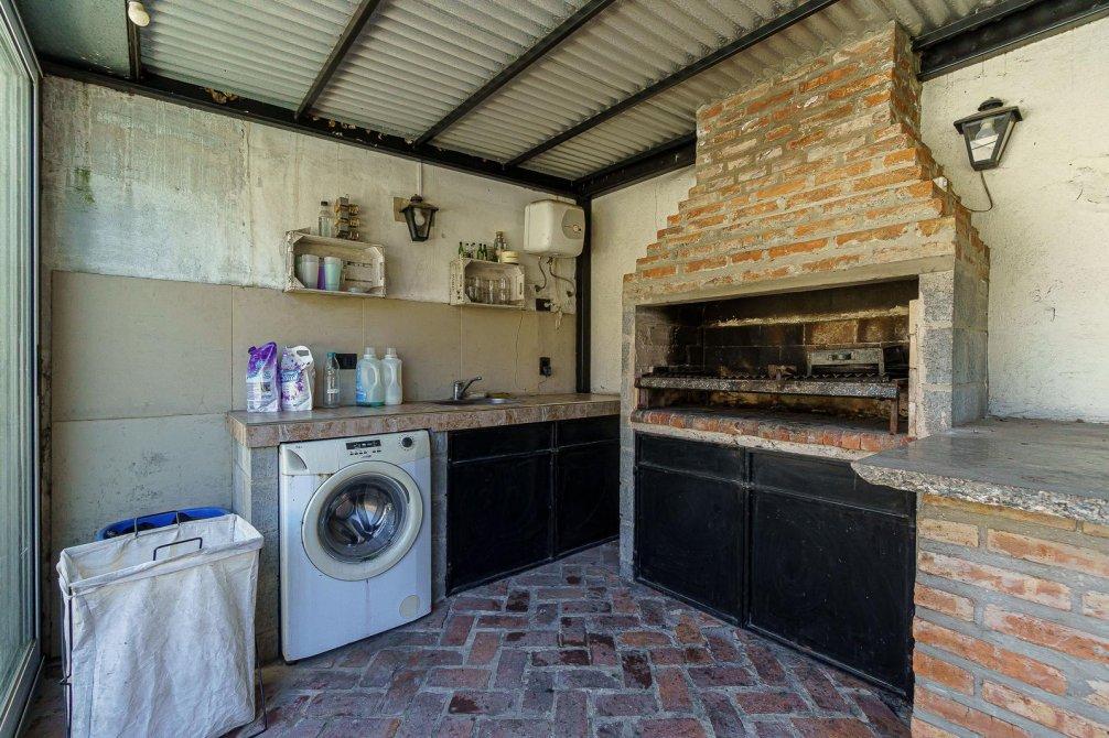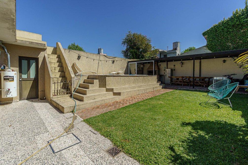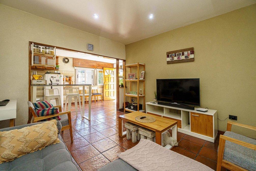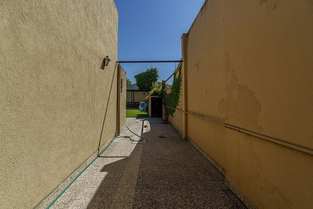 VENTA Casa de 3 ambientes. Cuenta, al frente, con jardín y cochera semi cubierta y pasante con portón eléctrico. Igresando al inmuble, con living comedor (hoy utilizado como habitación), baño completo, cocina comedor integrado, sala de estar/living y dormitorio principal. Al fondo, baño secundario, patio, jardín, quincho semicubierto, parrilla y pileta.