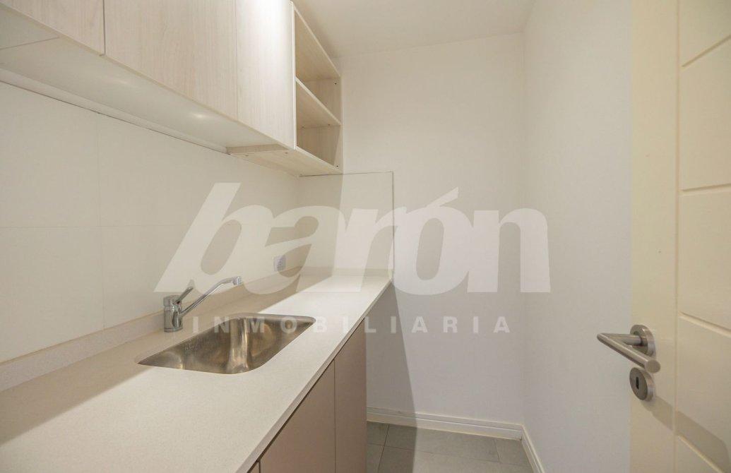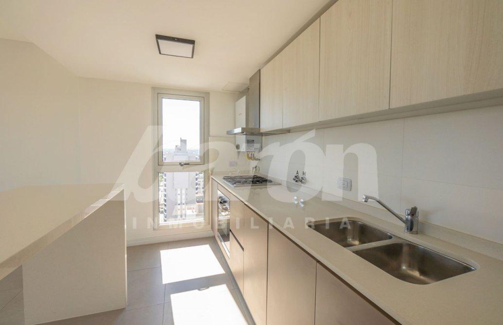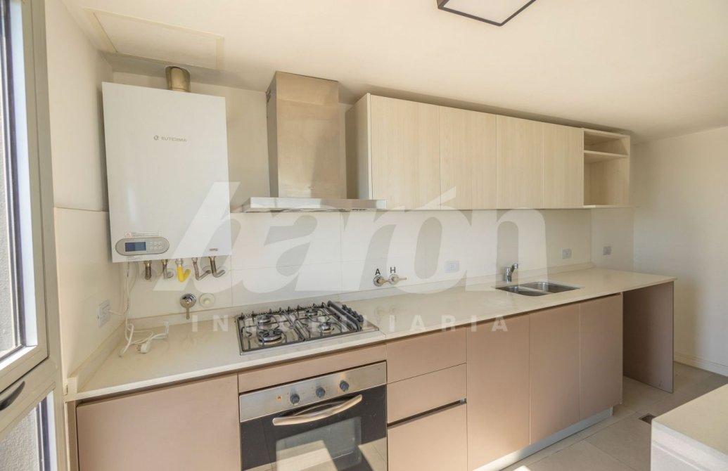 La cocina semi integrada ofrece muebles bajo y sobre mesada, amplio espacio de guardado, artefacto de cocina empotrado, extractor y ventana que aporta gran claridad y excelente circulación de aire.