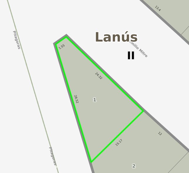 Lote de 203 m2, en esquina, en forma de triangulo