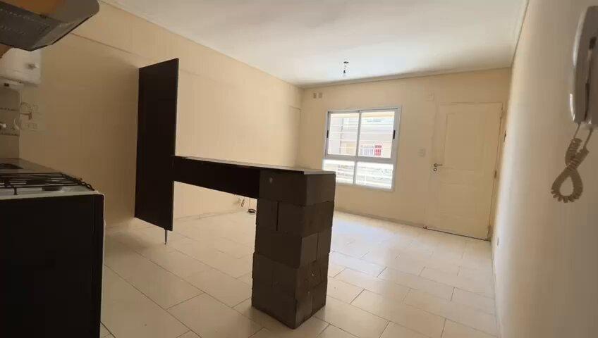 Cuenta con living comedor con cocina separada por una barra desayunadora, dormitorio con placard y baño completo.