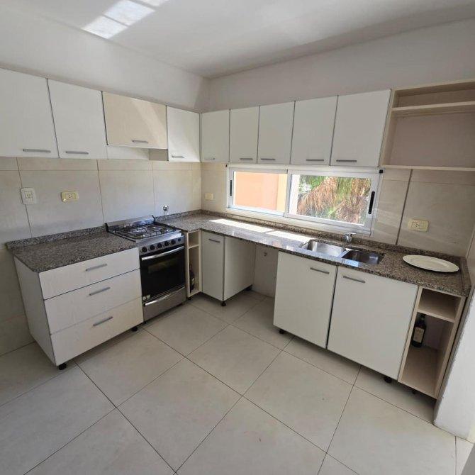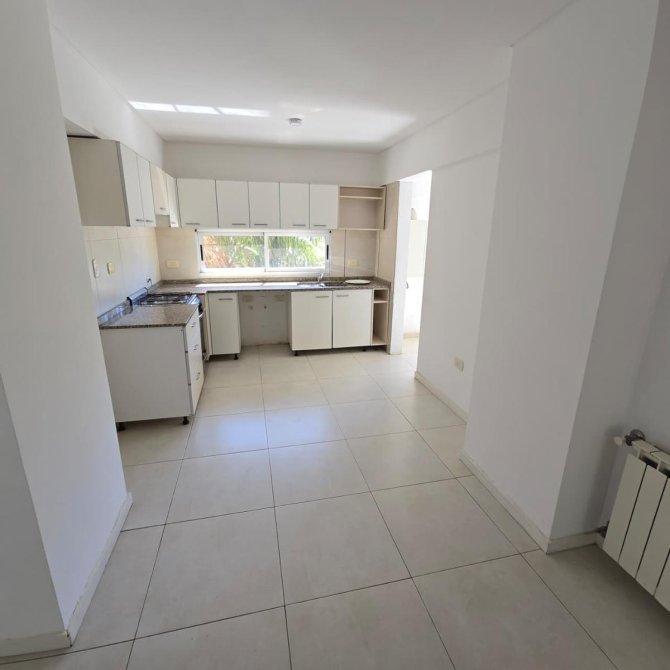 Cocina independiente: 2,77 × 4,45 m, calefacción por radiador, alacenas y bajo mesada, cocina a gas, espacio para lavarropas o lavavajillas, ventana al contrafrente y salida directa al área de lavadero/parrilla.