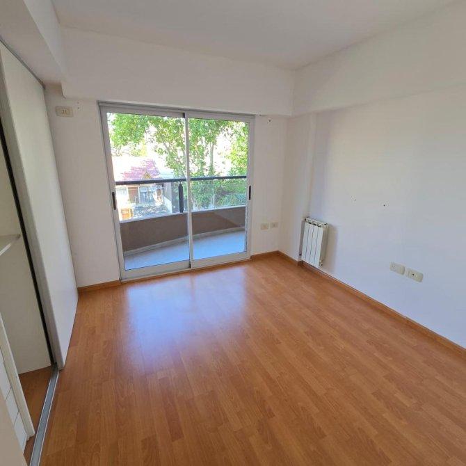 Dormitorio secundario: 2,90 × 3,00 m, piso flotante, radiador, salida al balcón al frente.