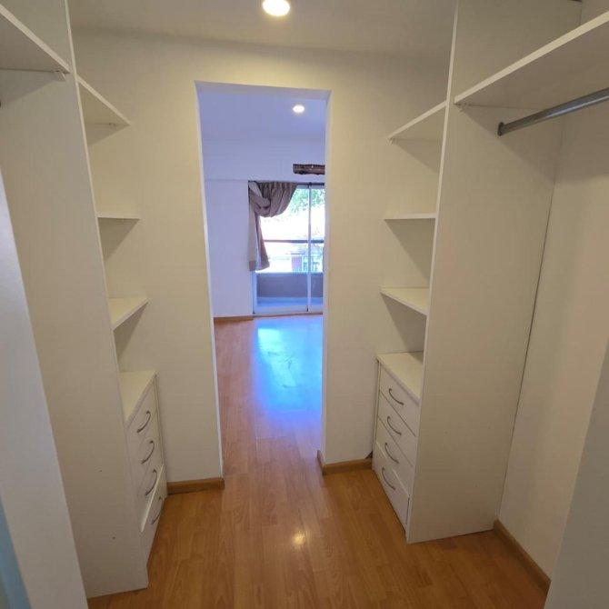 Dormitorio principal: 3,50 × 3,00 m, piso flotante, radiador, placard con interiores, salida al balcón al frente.