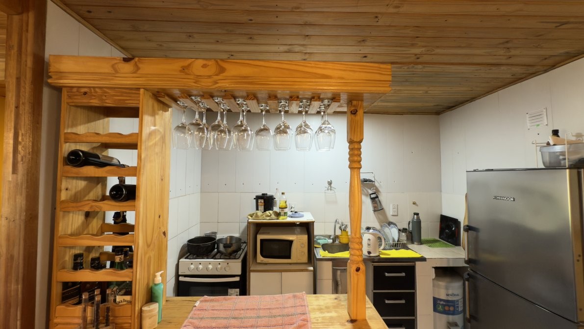 Ambiente integrado de cocina, living y comedor, cálido y funcional