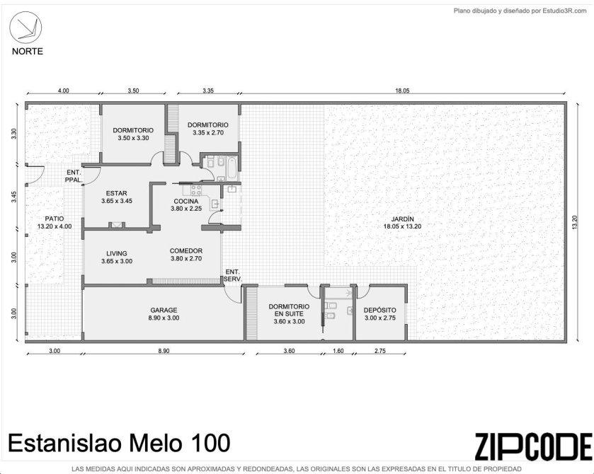 - Cochera cubierta: p/ 2 vehículos- 9 x 3 Tm