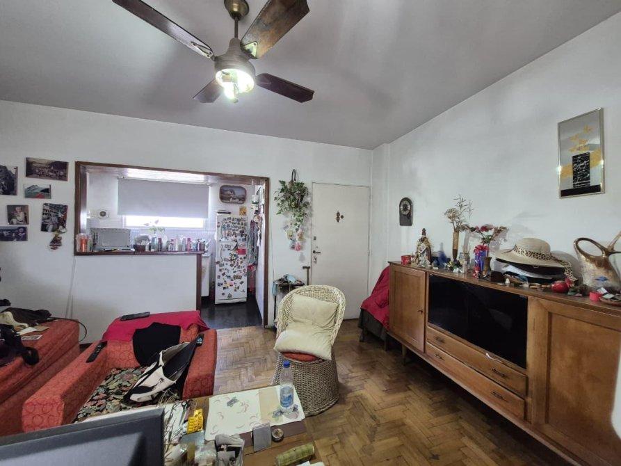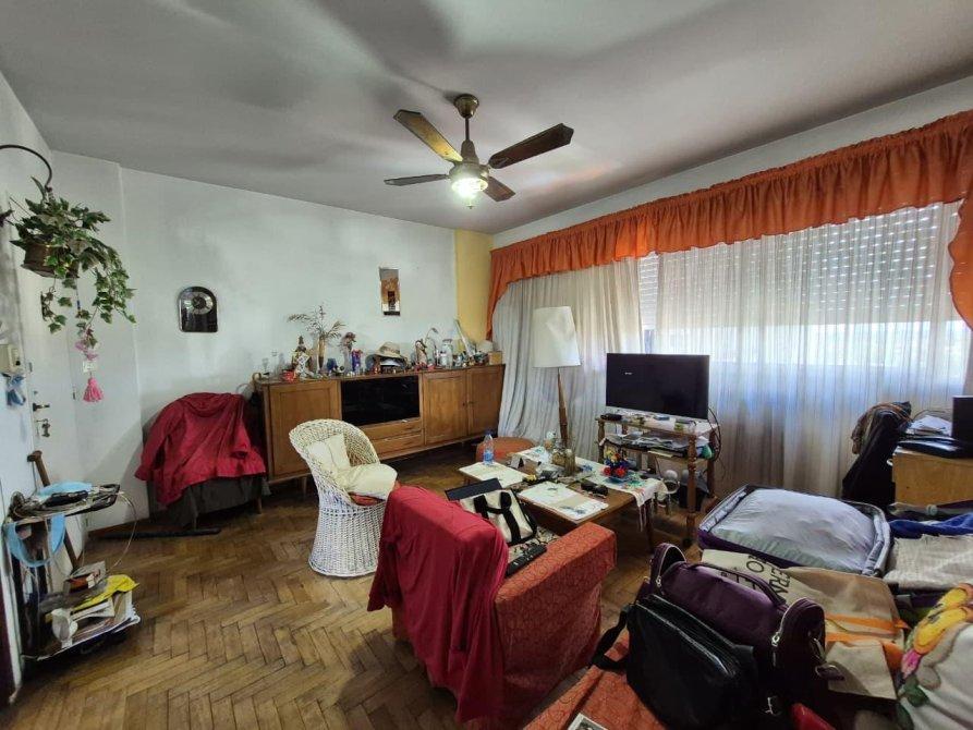 - Living comedor luminoso con vista abierta a la ciudad, piso de parquet conservado.