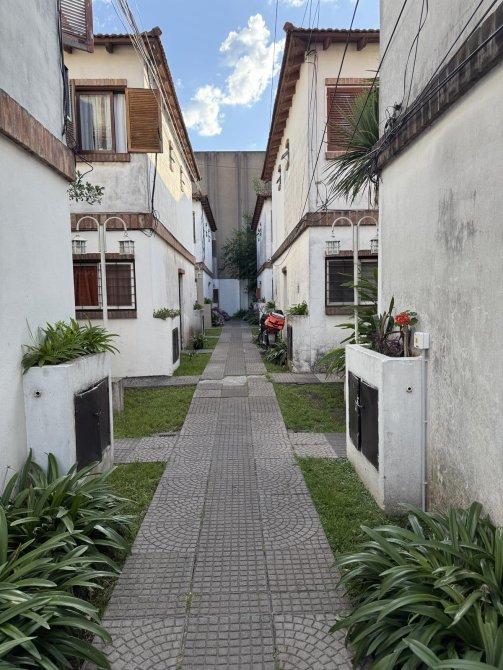 Es un condominio entre duplex y departamento con jardines y canteros