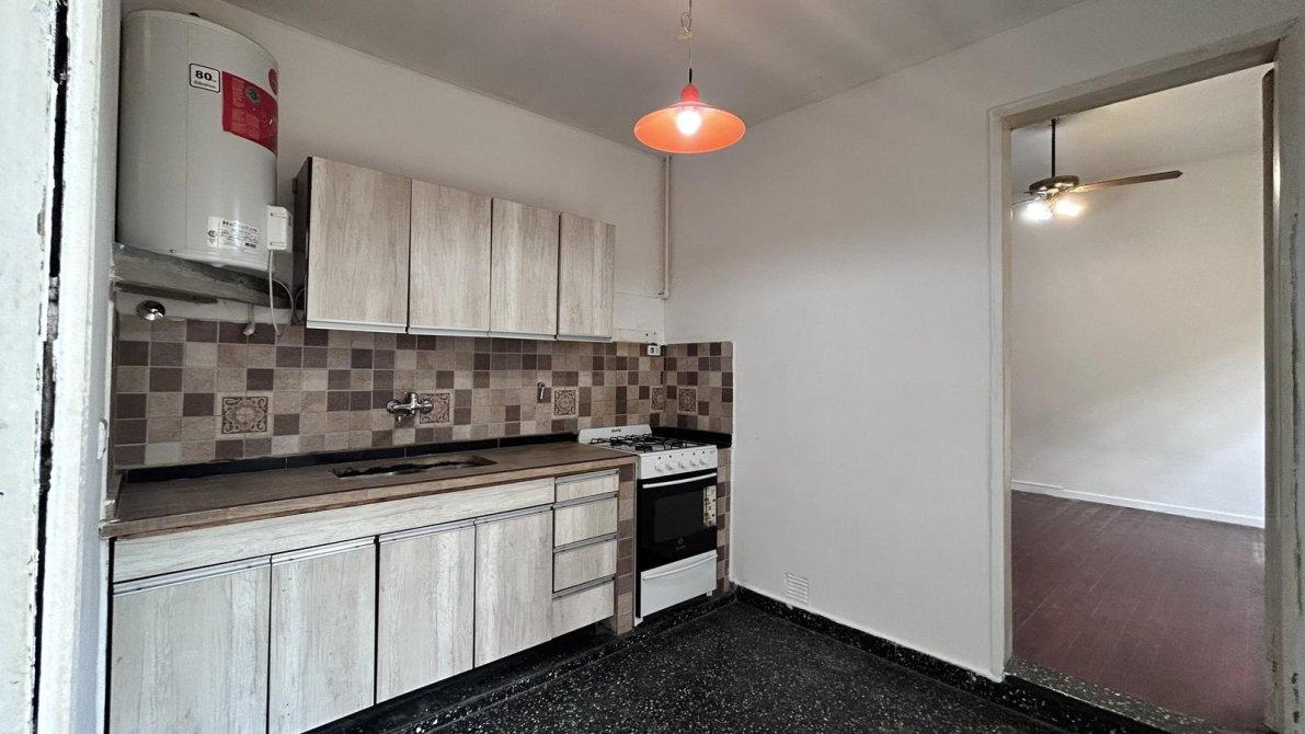 La cocina, amplia y funcional, permite comer cómodamente hasta 4 personas. Cuenta con muebles modernos, bajo mesada y alacenas, cocina a gas, extractor tipo spar, revestimientos cerámicos y termotanque eléctrico de 80 L.
